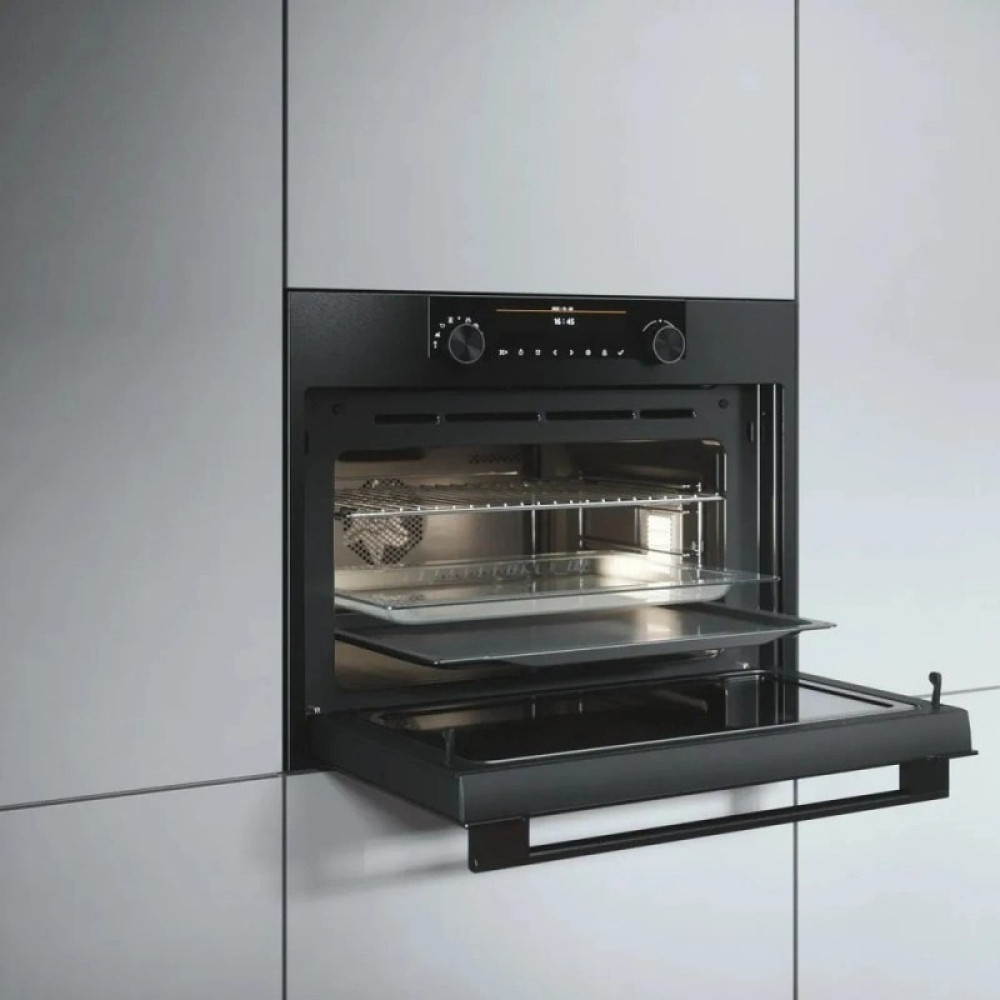 Ця комбінована мікрохвильова піч з чорної сталі поєднує переваги традиційного нагріву та гнучкість мікрохвильової технології в одному пристрої.