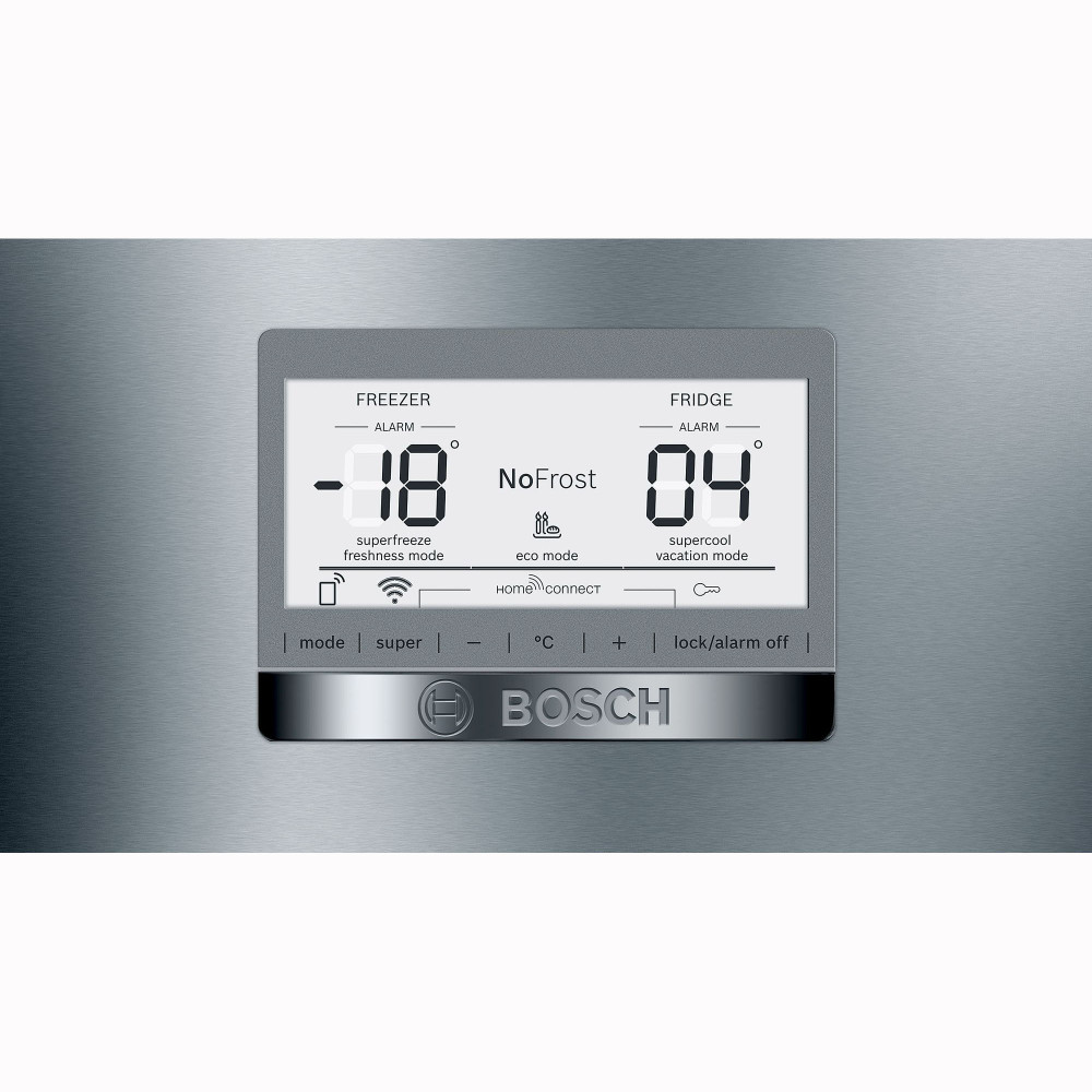 Рідкокристалічний дисплей на зовнішній стороні дверцят для вибору температури в обох камерах, спеціальних режимів роботи приладу та функцій