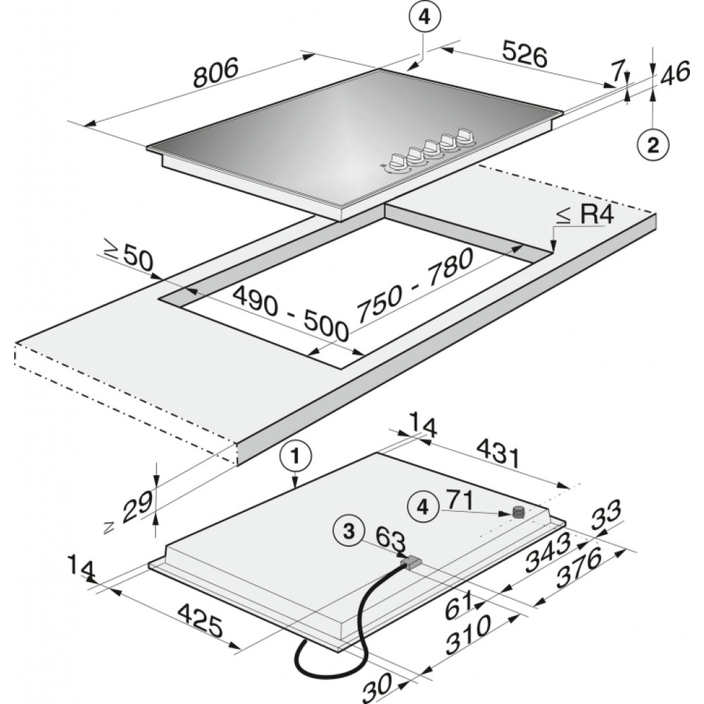 - 78,0 (монтаж зверху) - 804 (монтаж сходинкою урівень)