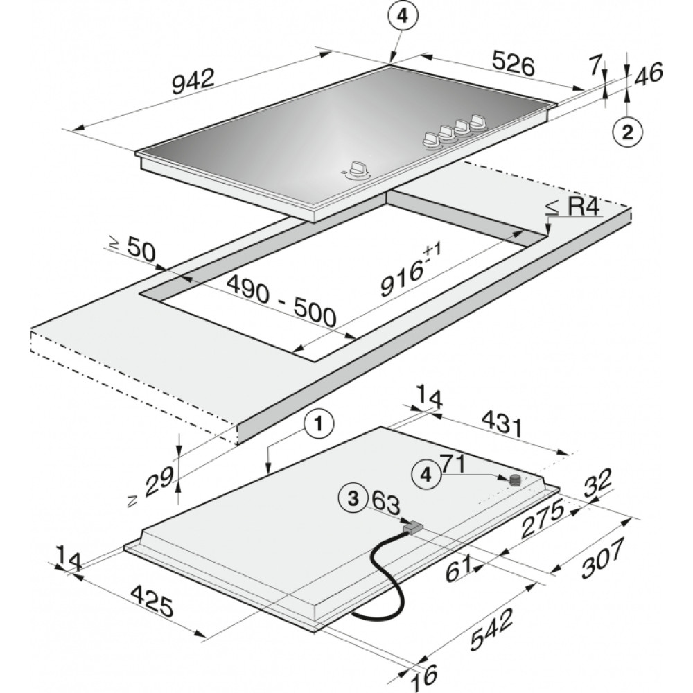 - Висота вбудовування з мережевою коробкою (см)