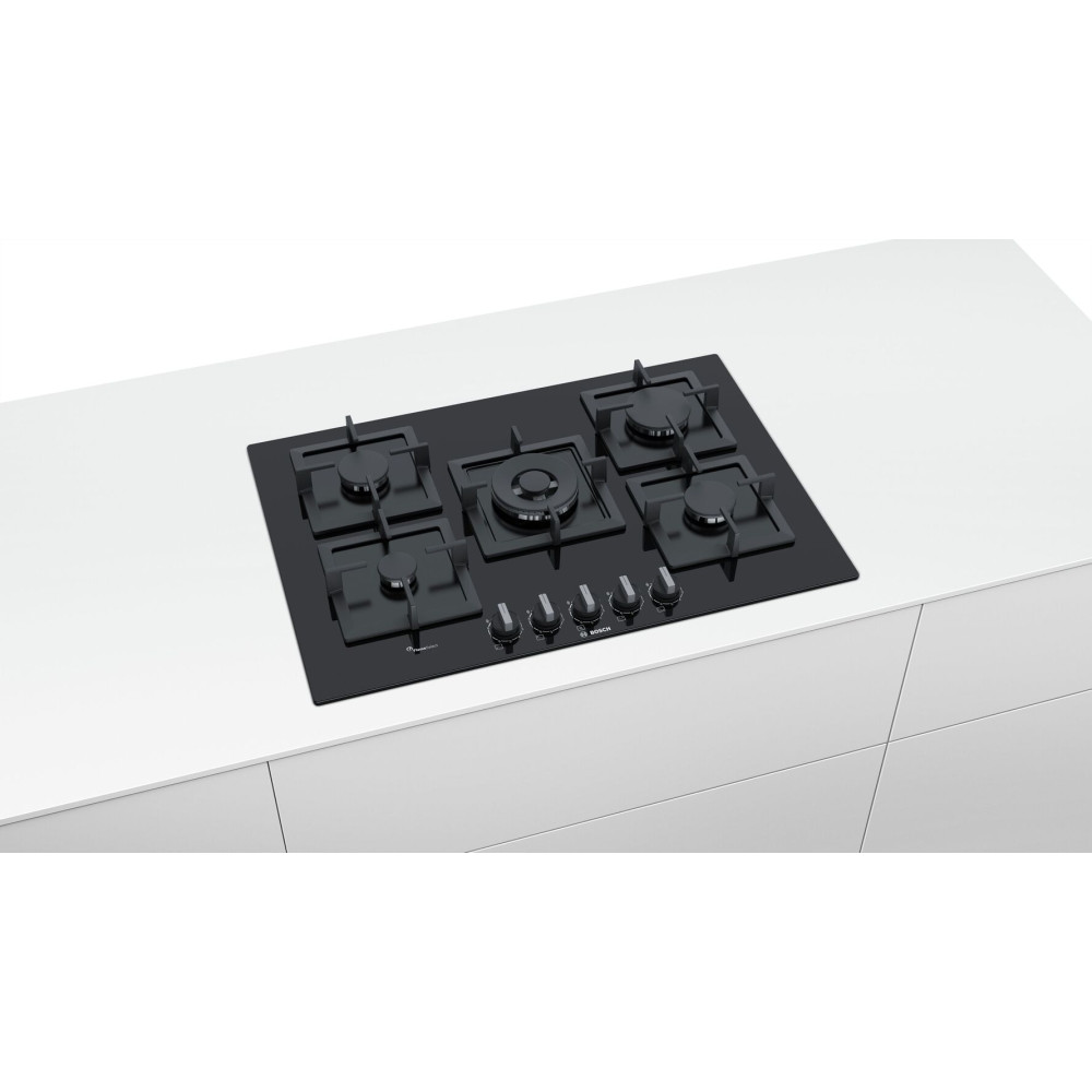 Serie | 6, Газова варильна поверхня, 75 cm, Загартоване скло, Чорний PPQ7A6B20Газова варильна поверхня, 75 см
