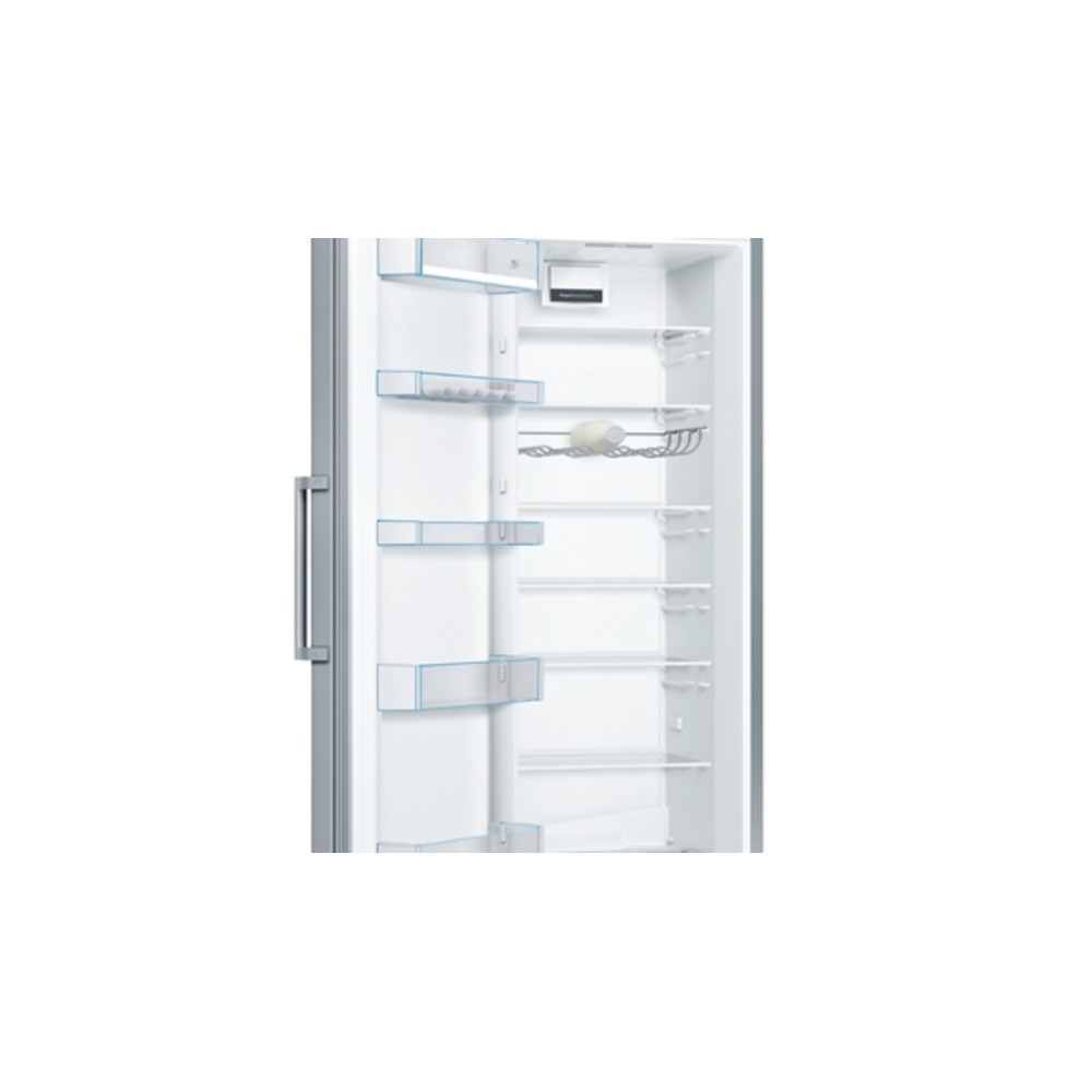 - Холодильна шафа, розміри приладу (ВхШхГ): 186x60x65 см Колір дверцят - імітація нержавіючої сталі Inox Look Колір корпусу - темно-сірий Metallic Сhrome КОМФОРТ ТА БЕЗПЕКА У КОРИСТУВАННІ • Клас ефективності енергоспоживання: A++ • Електронне регулювання температури зі світлодіодною індикацією • Автоматичне розморожування у холодильній камері • Сучасний дизайн з металевими аплікаціями в інтер'єрі ХОЛОДИЛЬНА КАМЕРА • Об'єм холодильної камери 346 літр • Система активного охолодження з допомогою інтегрованого вентилятора • Кількість поличок з загартованого скла - 7, з яких 5 переставляються за висотою • Функція швидкого охолодження Super Сooling автоматичним вимкненням • Кількість лотків для яєць - 1 • Підвісна металева хромована решітка для пляшок • 4 дверні полички, з них 2 глибокі та 2 стандартні • Ручка з механізмом полегшеного відкривання дверцят • Відділення для вершкового масла з кришкою • Сучасне світлодіодне освітлення ТЕХНІЧНА ІНФОРМАЦІЯ • Загальний об'єм НЕТТО: 346 л • Кількість незалежних контурів охолодження - 1 • Споживання електроенергії: 112 кВт/рік • Передні ніжки регулюються за висотою/ролики позаду приладу • Клімат-клас: SN-T РОЗМІРИ ПРИЛАДУ • Розміри приладу (ВхШхГ): 186x60x65 см