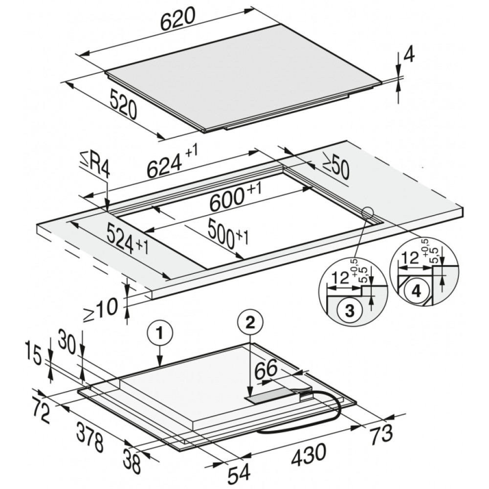 Ширина 620 мм для встановлення врівень або на стільницю