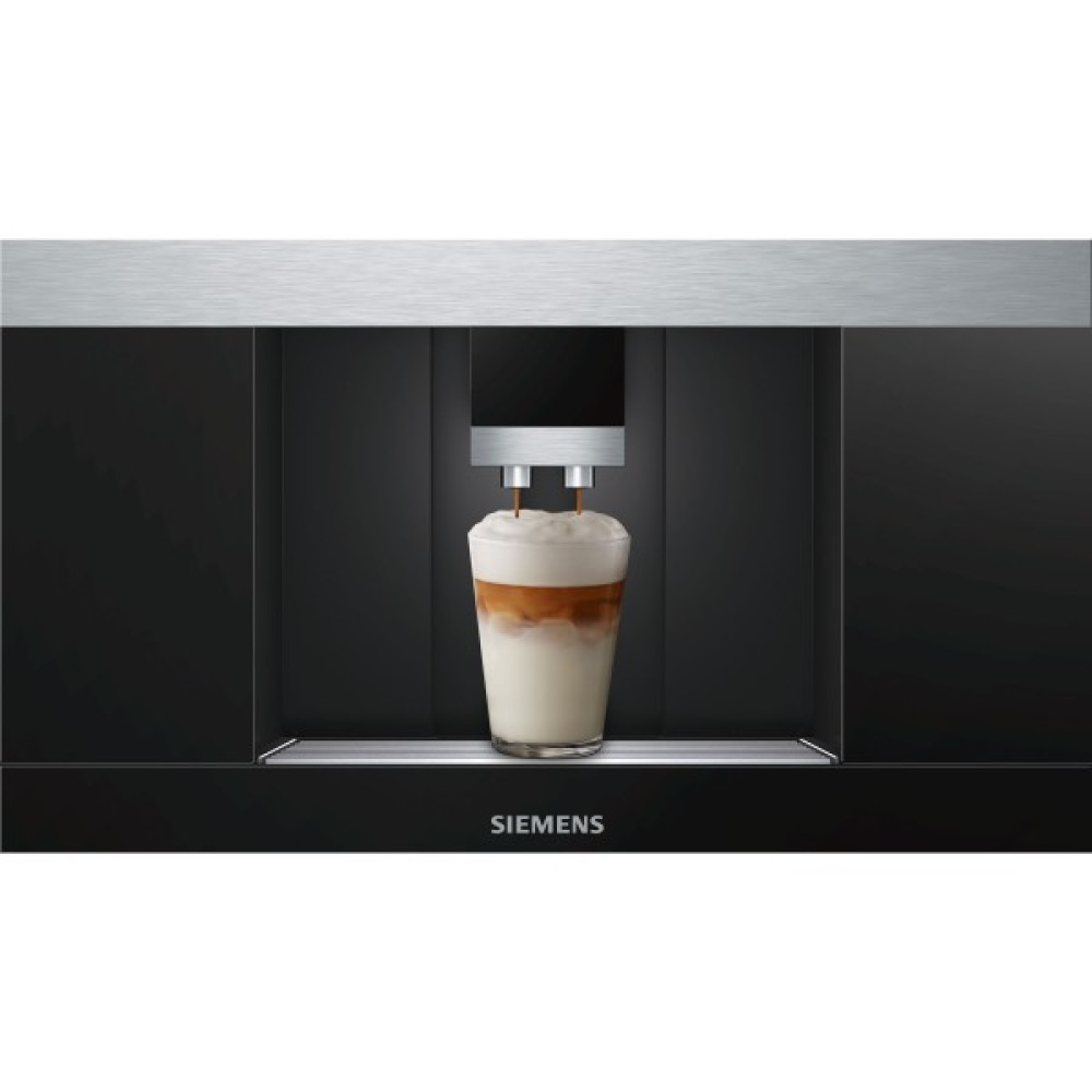 Siemens CT636LES1 - високотехнологічний кавовий апарат потужністю 1600 Вт з водним насосом на 19 бар, призначений для вбудовування в нішу розмірами 449х558х354 мм. Дана модель не тільки виглядає ефектно і вишукано. Вона володіє високими міцнісними і ергономічними властивостями, оснащена TFT-дисплеєм з інтерактивним меню, інтуїтивними кнопками з підсвічуванням, комплектується півлітровим контейнером для молока з кришкою freshLock. Резервуар води Siemens CT636LES1 розрахований на заповнення 2,4 л рідини. Користувачеві доступні різні експерименти з їх подальшим збереженням у пам'яті пристрою (запам'ятовує до 8 варіацій напою). Також присутня можливість одночасного приготування 2 порцій. Ступінь помелу регулюється.
