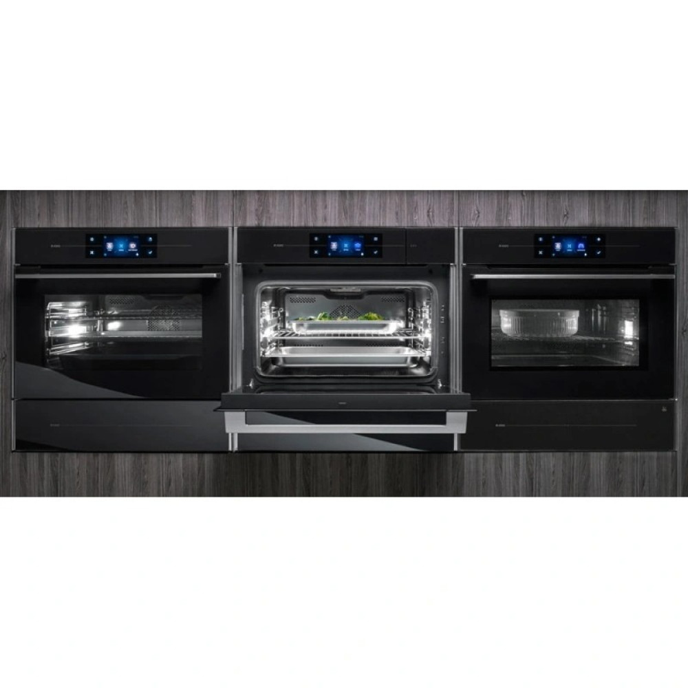 Цей пароконвектомат у перламутрово-чорному кольорі розкриває весь потенціал приготування на пару та розміщує улюблений інструмент шеф-кухаря на вашій власній кухні. Відчуйте нові смаки, використовуючи пару в поєднанні з гарячим повітрям, або готуйте справді здорову їжу, використовуючи лише пару.