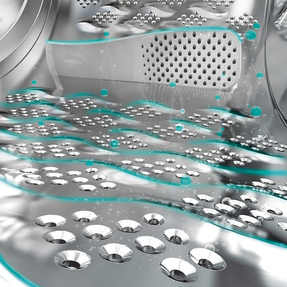 Унікальний барабан із хвилеподібним візерунком у поєднанні зі спеціальними хвилеподібними 3D ребрами, забезпечують делікатну турботу для ідеальної чистоти білизни з мінімальною кількістю складок.