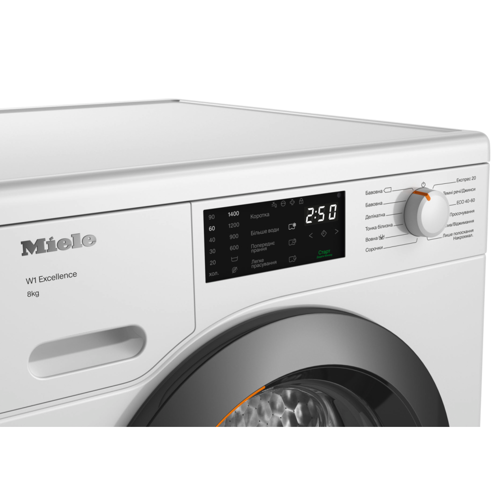 Завантаження 8 кг. | Віджим 1400 об/хв. | Дисплей DirectSensor White. | Відтермінування старту до 24 год. | 11 програм прання. | Легке прасування. | Мотор ProfiEco. | CapDosing.