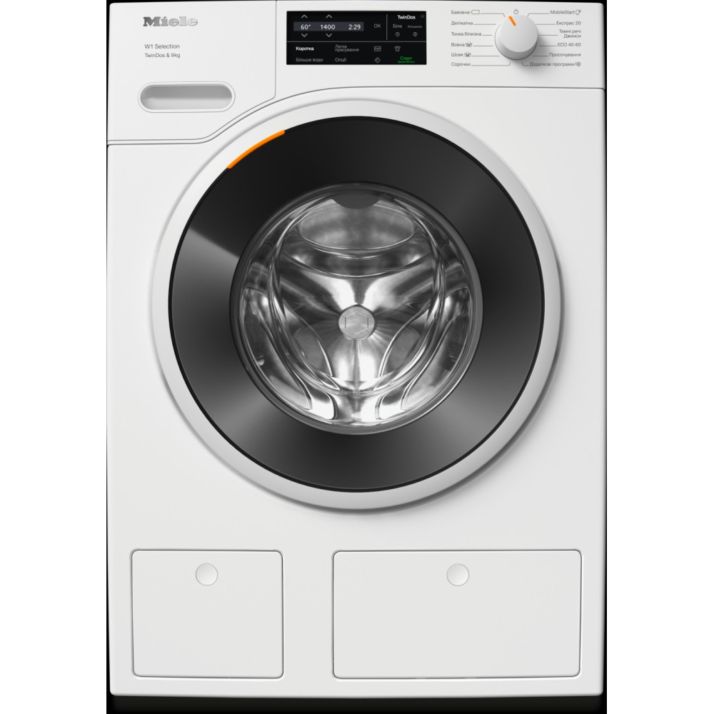 Завантаження 9 кг. | Віджим 1400 об/хв. | Дисплей ComfortSensor. | 16 програм прання. | Функція TwinDos. | Функція CapDosing. | Функція AddLoad. | WiFiConn@ct. Керування програмою Miele@Mobile. | Мотор ProfiEco.