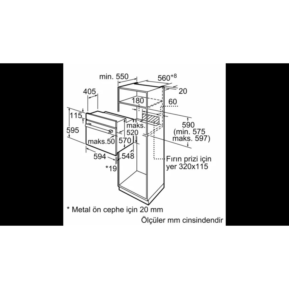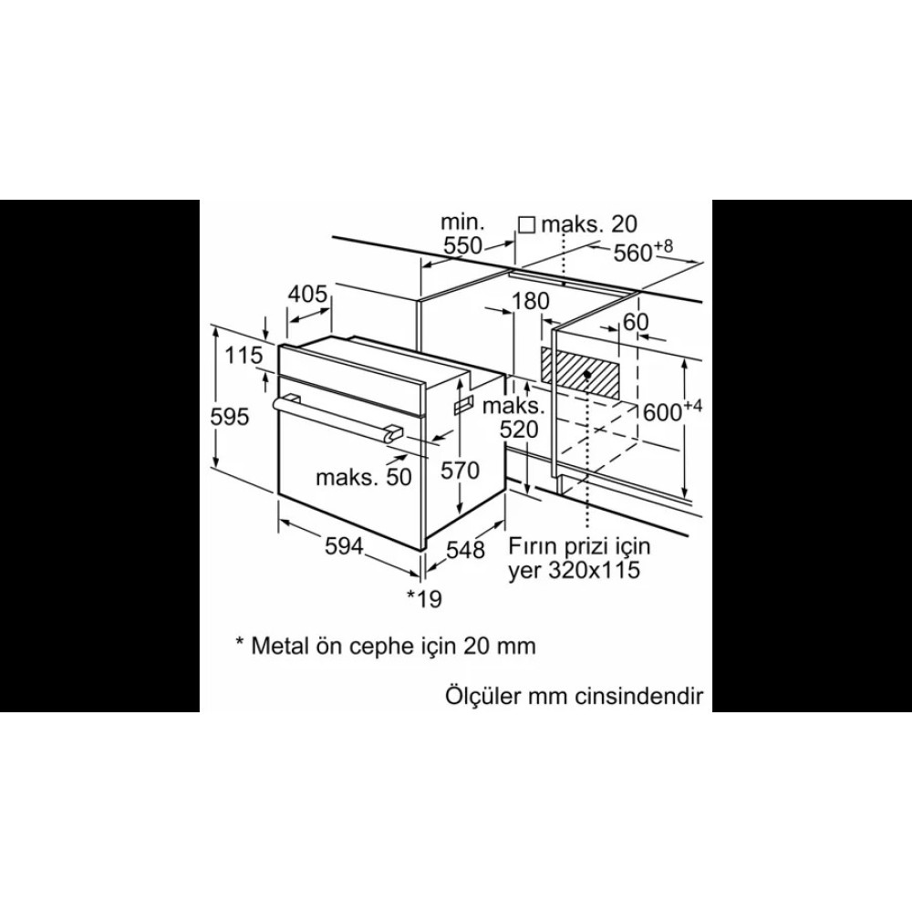 Размеры прибора (ВхШхГ): 595 мм x 594 мм x 548 ммРазмеры ниши (ВxШxГ): 575 мм - 597 мм x 560 мм - 568 мм x 550 мм