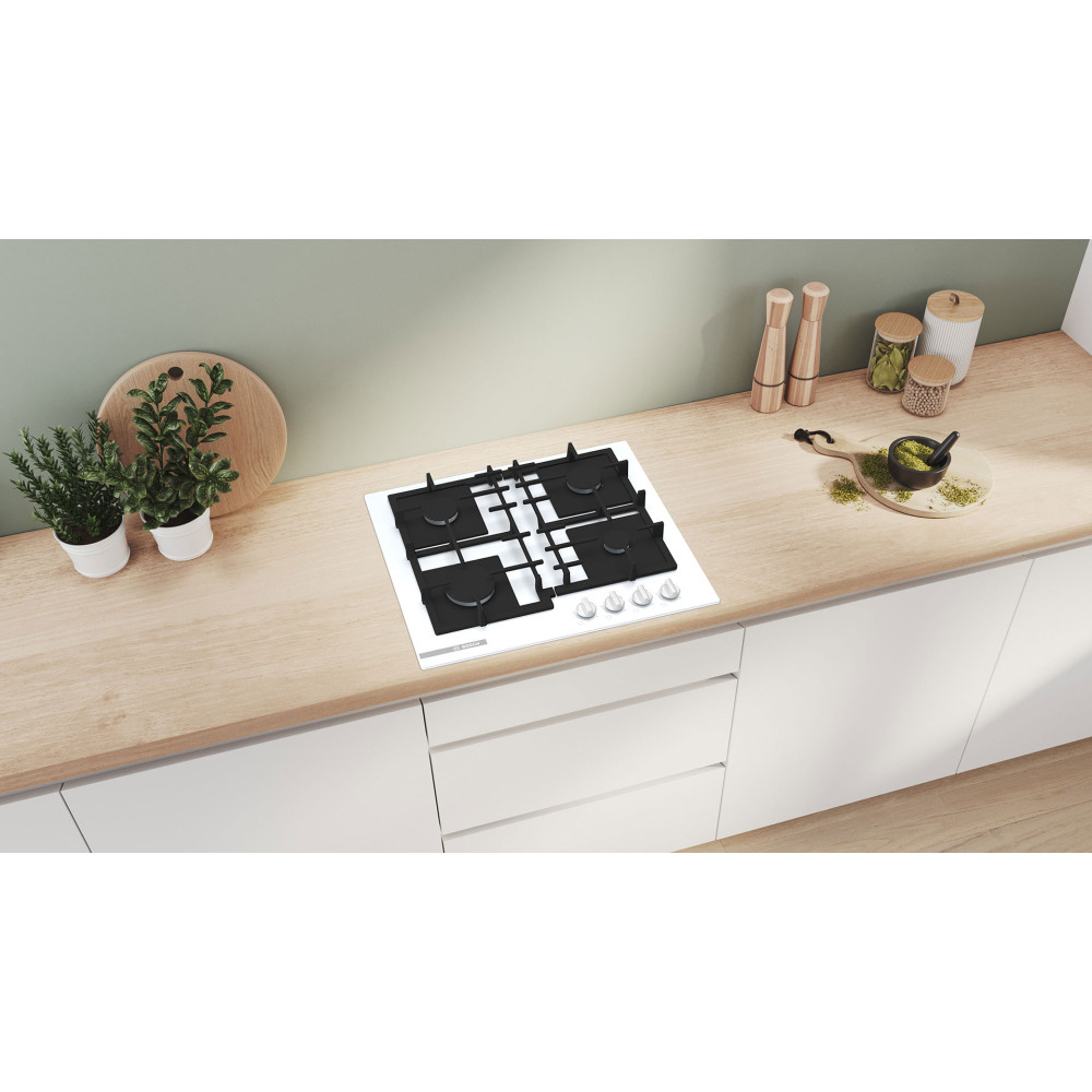 Serie | 2, Газовая варочная поверхность, 60 cm, Закаленное стекло, белый POP6C2B11OГазовые конфорки: 4