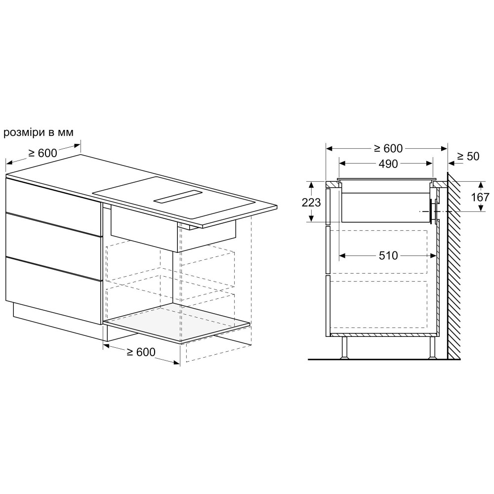 Размеры ниши для встраивания: (ВхШхГ) 223 мм x 560 мм x 490 мм