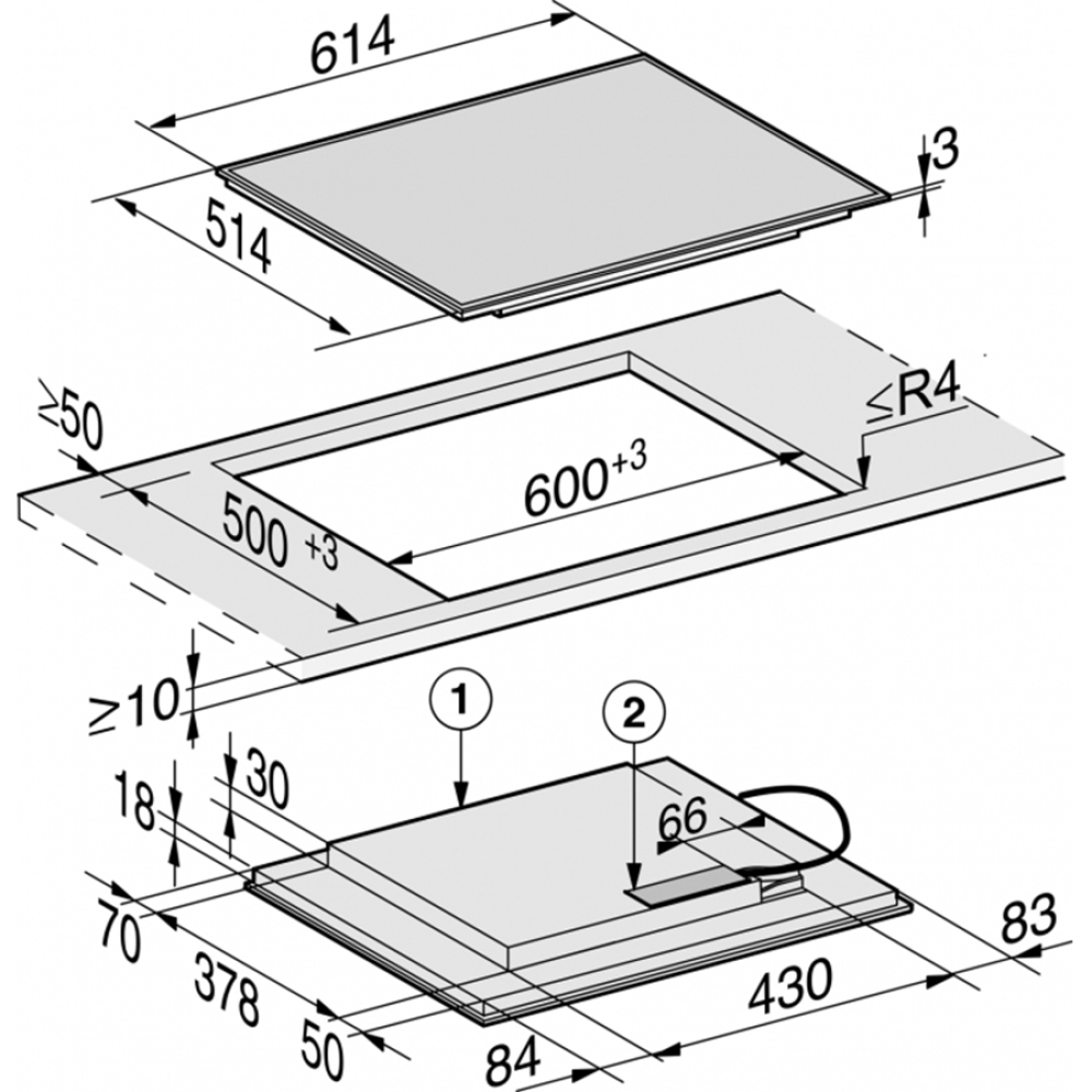 Ширина 614 mm с рамкой из нержавеющей стали для установки в столешницу.