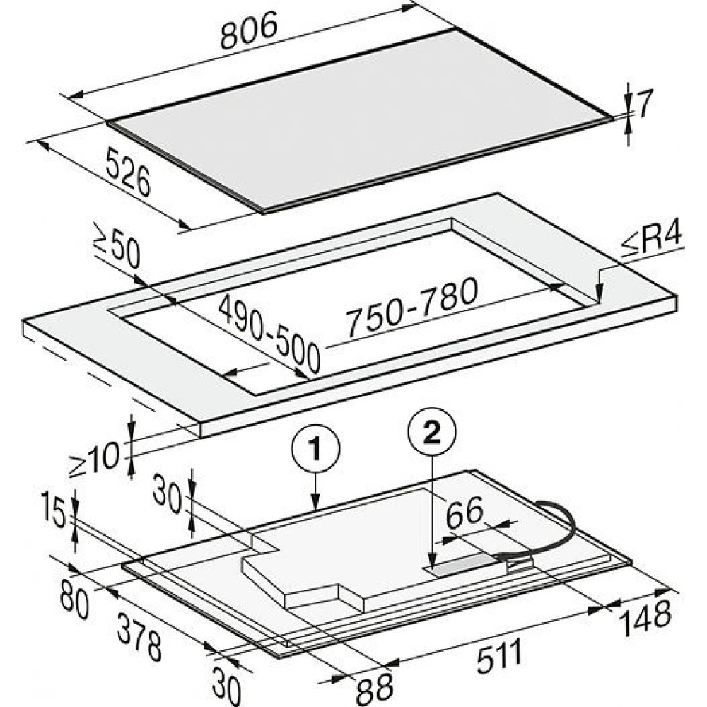 Ширина 806 mm с рамкой из нержавеющей стали для установки в столешницу.