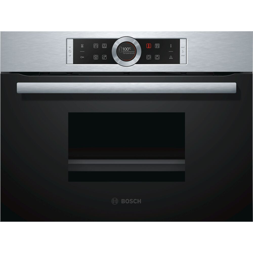 Компактный духовой шкаф-пароварка Бош с 4 видами нагрева: функция добавления пара, деликатный разогрева продуктов, доведение блюд до готовности, размораживания продуктов