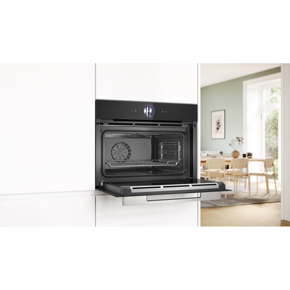 Серия 8, Встраиваемый компактный духовой шкаф с функцией пара, 60 x 45 cm, Черный