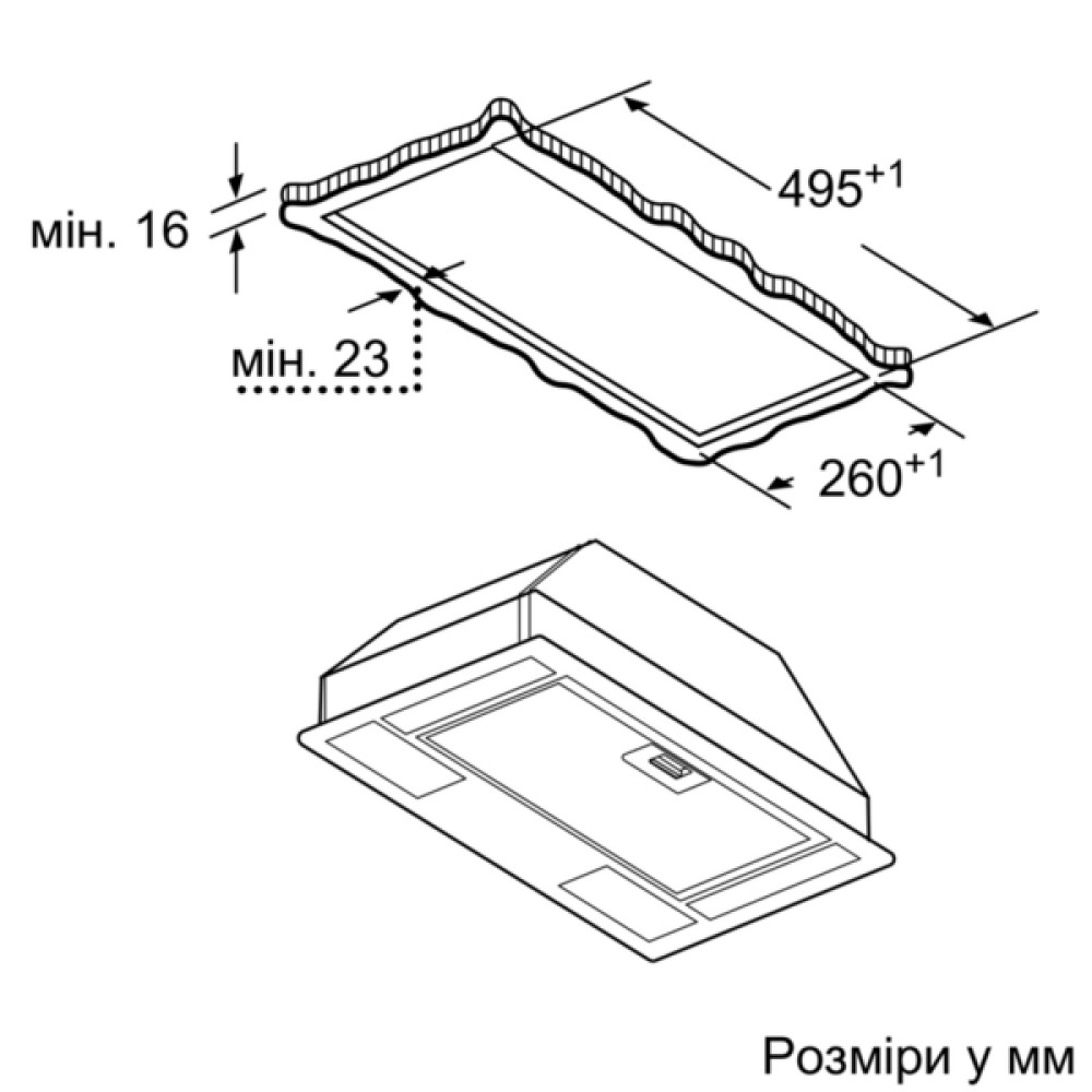 Размеры ниши для встраивания (ВxШxГ): 208 x 493 x 257 мм