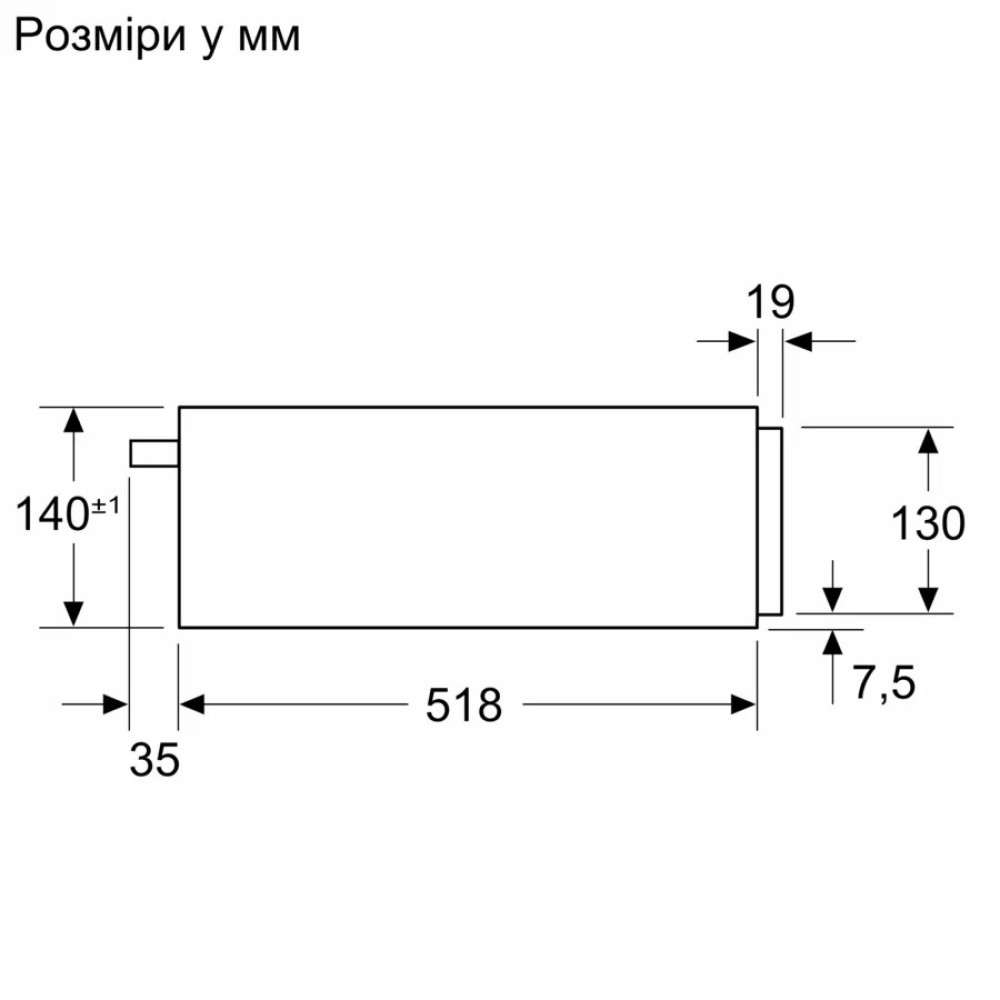 Размеры прибора (ВхШхГ): 140 мм x 594 мм x 518 ммРазмеры ниши (ВхШхГ): 140 мм x 560 мм – 568 мм x 550 мм