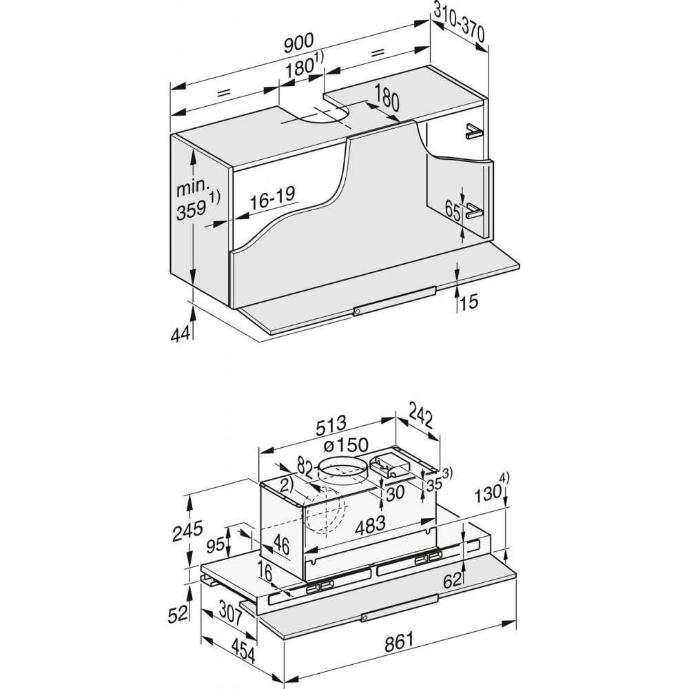 Вытяжка с плоской выдвижной панелью с интуитивно понятным управлением SmartControl White для установки в узких настенных шкафах.