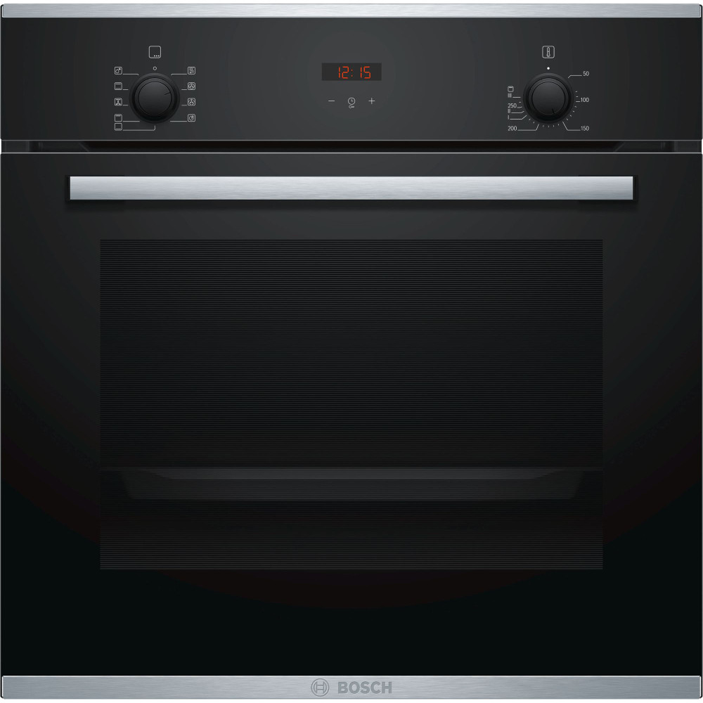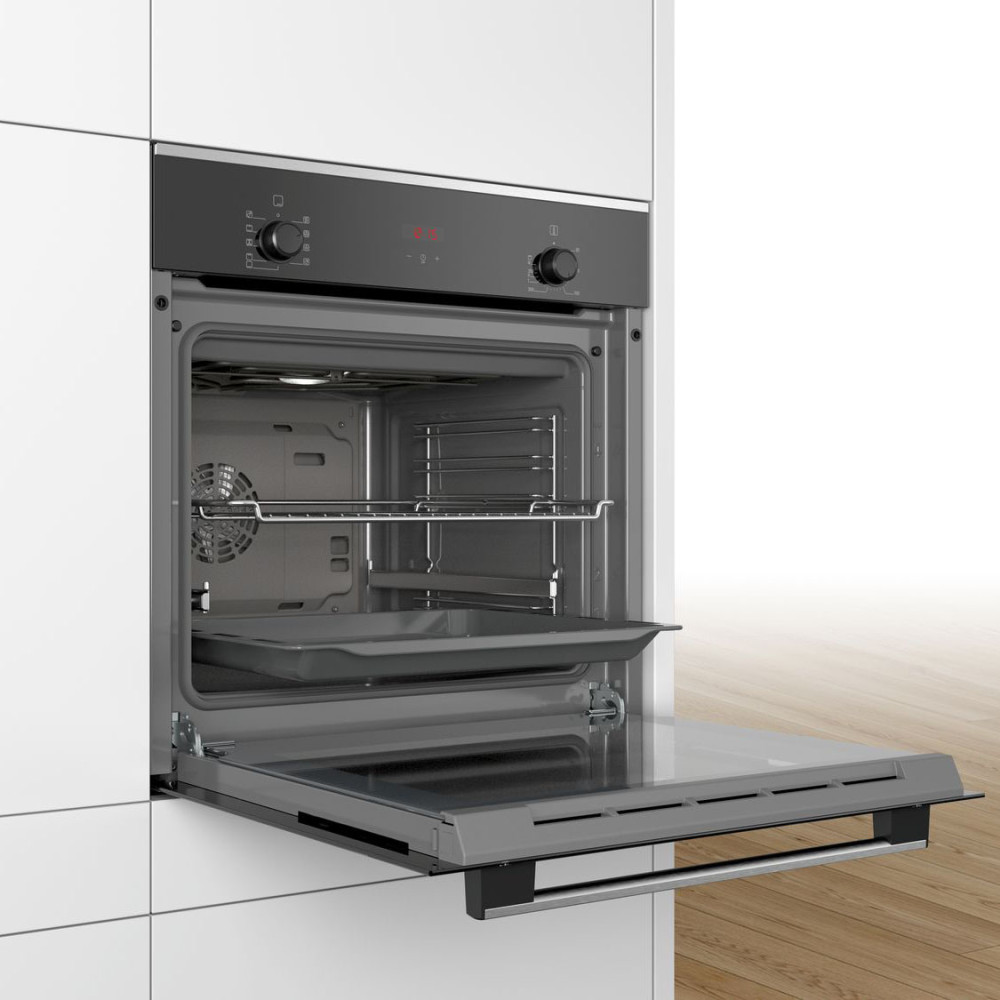 Встраиваемый электрический духовой шкаф БОШ в черном цвете.
