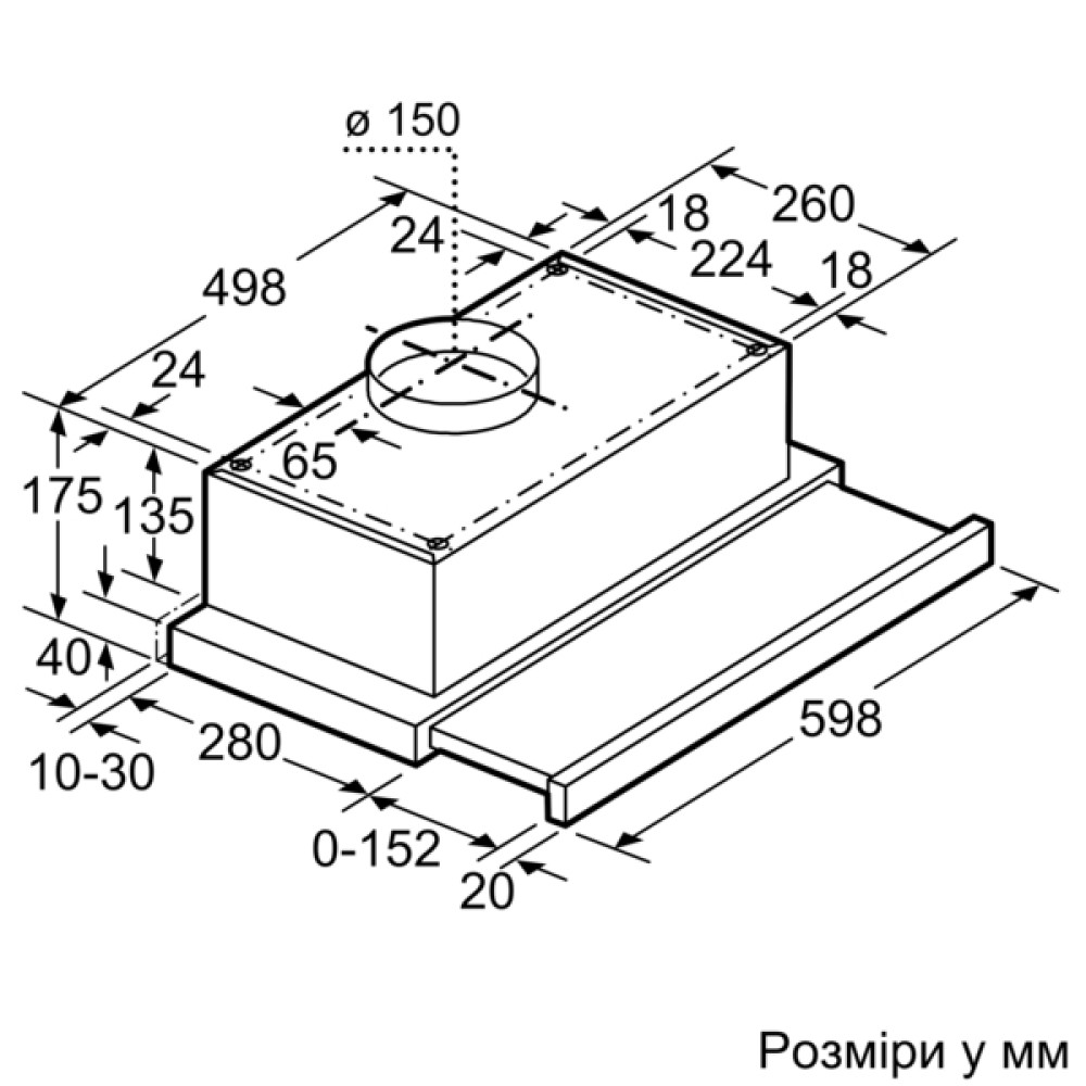 Діаметр вихідного патрубка: 150 мм (патрубок ? 120 мм у комплекті)