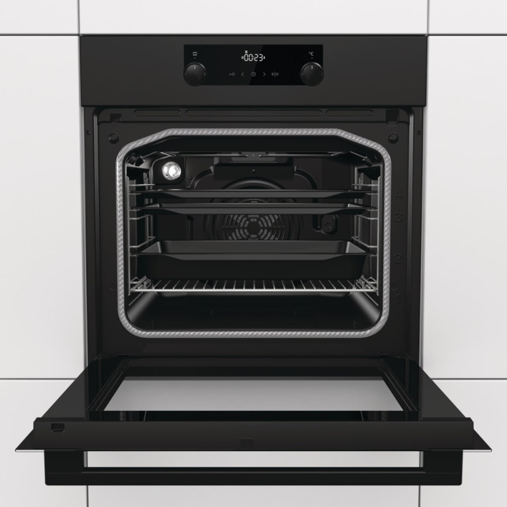 Нове покоління духовок Gorenje приховує простір у верхній частині. Тепер оптимізований потік повітря циркулює всередині в іще більшому обсязі, обертаючись зовсім вільно. Збільшена місткість уможливлює використання більших дек і приготування більшої кількості їжі, тоді як зовнішні розміри залишаються незмінними. Тепер можна користуватися не трьома, як до цього, а п’ятьма рівнями духовки одночасно. Місткість варіюється до 75 л у стандартних духовках і до 53 л у мікрохвильових печах. Цей показник є одним із найбільших доступних на ринку.