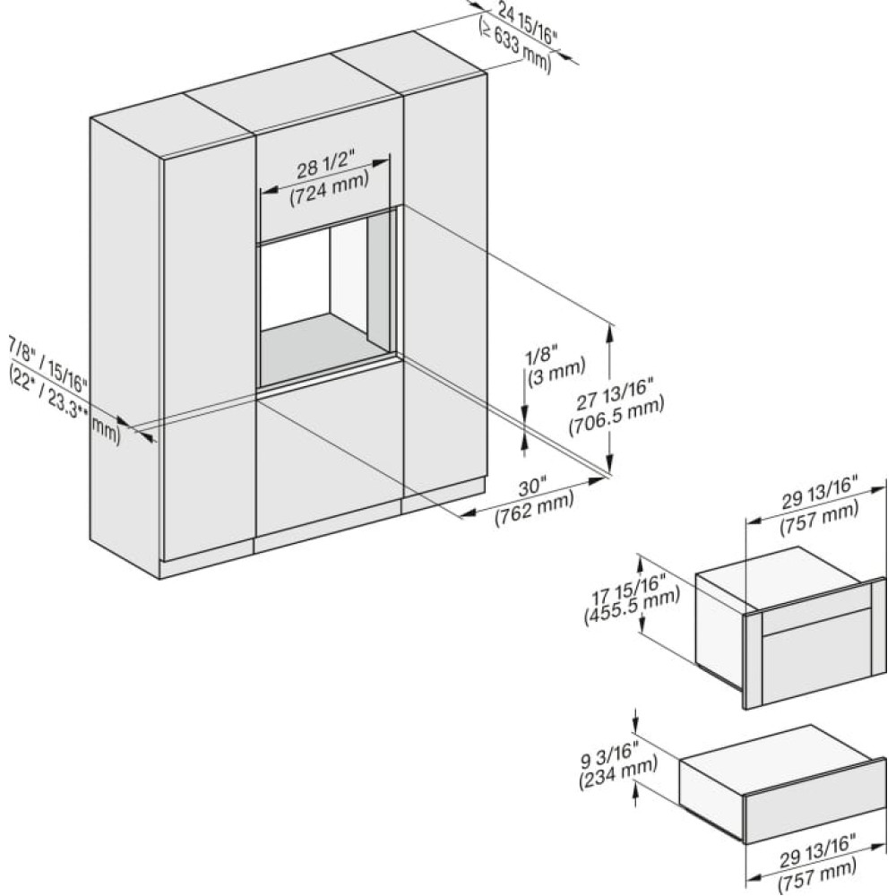 - Мін. ширина ніші, у мм